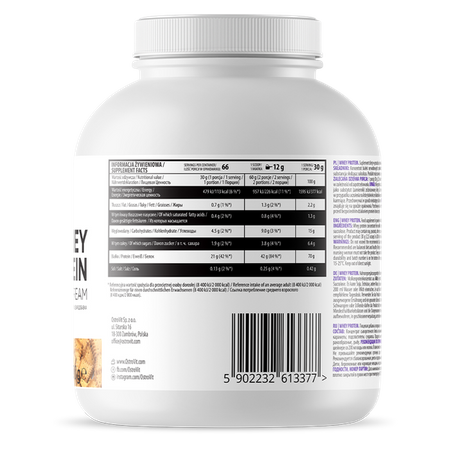 Whey protein intensively supports the process of muscle growth and allows the reconstruction of muscle fibers. It works anabolic and anti-catabolic - prevents the breakdown of muscle tissue. It reduces the feeling of fatigue and accelerates muscle regeneration after training.