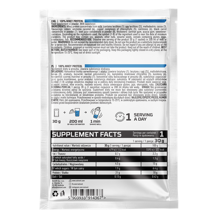 OstroVit 100% Whey Protein to odżywka białkowa - cenne źródło protein, które pomaga w utrzymaniu zdrowych kości. Suplement diety przeznaczony jest w szczególności dla sportowców, ponieważ białko przyczynia się do wzrostu masy mięśniowej, a także pomaga w utrzymaniu masy mięśniowej.