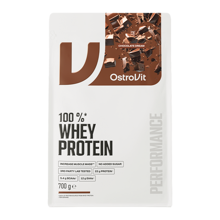 OstroVit 100% Whey Protein to suplement diety, który stanowi źródło koncentratu białka serwatki, zawierającego aż 73% wysokiej jakości protein. To preparat, który dostarcza do organizmu aminokwasy rozgałęzione BCAA, a także niezbędne aminokwasy egzogenne EAA. To niskotłuszczowy produkt, dostępny w postaci proszku w różnych wariantach smakowych, który został stworzony z myślą o sportowcach i osobach, którym zależy na uzupełnieniu codziennej diety w cenny makroskładnik.