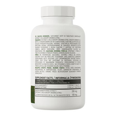 - Zawiera ekstrakt z całej rośliny bakopy drobnolistnej standaryzowany na 50% bakozydów - jedna porcja suplementu diety dostarcza do organizmu 200 mg ekstraktu.