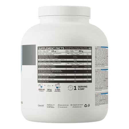 - Wzbogacony w cenne aminokwasy - porcja produktu zawiera 1200 mg L-glutaminy oraz 900 mg L-argininy.