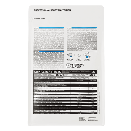 - Wzbogacony w wartościowe składniki - porcja odżywki zawiera 300 mg potasu, 285 mg sodu, 160 mg wapnia, a także 75 mg magnezu, 80 mg witaminy C, 1,4 mg witaminy B6 oraz 200 mg AAKG i 200 mg beta-alaniny.