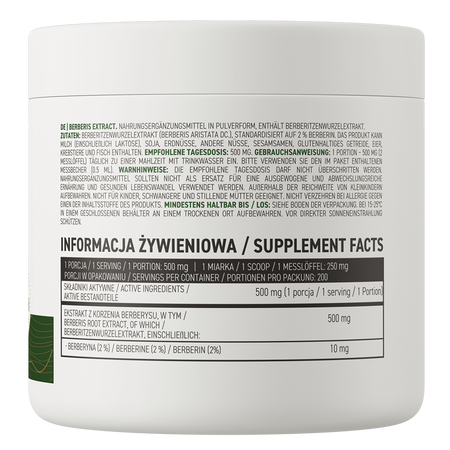 - Jedna porcja suplementu diety dostarcza do organizmu 500 mg ekstraktu z korzenia berberysu standaryzowanego na 2% berberyny.