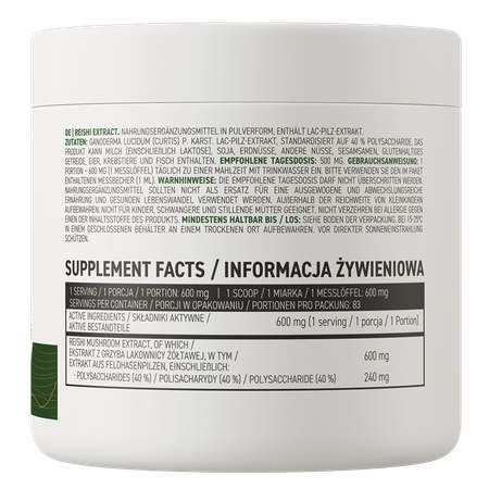 OstroVit Ekstrakt z Grzybów Reishi to suplement diety, który stanowi źródło ekstraktu z grzyba reishi standaryzowanego na 40% polisacharydów. To preparat o prostym składzie, dostępny w formie proszku. To produkt stworzony z myślą o świadomych konsumentach, którym zależy na uzupełnieniu codziennej diety w wartościowe związki naturalnego pochodzenia.