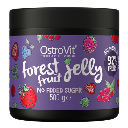 - MINIMALNA ILOŚĆ KALORII - 100 g naszego OstroVit Forest Fruit Jelly to około 40 kcal - dużo mniej niż 100 g standardowego dżemu czy owocowej marmolady. Możesz cieszyć się jej smakiem bez wyrzutów sumienia - jest odpowiednia dla osób dbających o obniżoną kaloryczność dań.