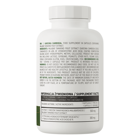 - Źródło garcinia cambogia - jedna porcja suplementu diety dostarcza do organizmu 500 mg ekstraktu z tamaryndowca malabarskiego.