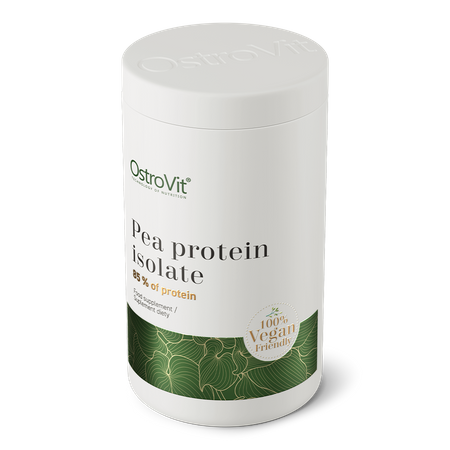 OstroVit Pea Protein Isolate to wysokiej jakości suplement diety, który stanowi źródło izolatu białka grochu i zawiera aż 85% protein. To wegański preparat o prostym składzie, dostępny w łatwej w użyciu formie proszku. To produkt stworzony z myślą o sportowcach i osobach, które wyróżniają się zwiększonym zapotrzebowaniem na proteiny.