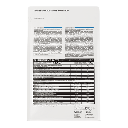 - Bogactwo elektrolitów i cennych składników odżywczych - jedna porcja suplementu diety dostarcza do organizmu 319 mg sodu, 120 mg wapnia, 56,25 mg magnezu, 300 mg potasu, a także 80 mg witaminy C i 1 mg witaminy B6. Dodatkowo produkt zawiera 100 mg BCAA, 200 mg winianu L-karnityny i 80 mg L-glutaminy.