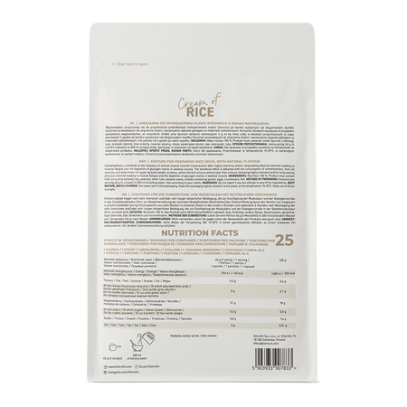 - Wygodna forma - produkt dostępny w postaci proszku zapewnia bezproblemową podaż kleiku - wystarczy porcję mieszanki rozpuścić we wrzącej wodzie i gotowe!