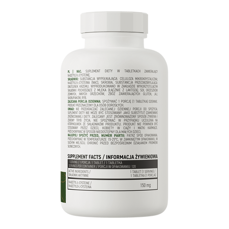 - Źródło N-acetylo-L-cysteiny - jedna porcja suplementu diety dostarcza do organizmu 150 mg NAC.