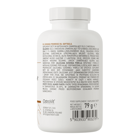 - Źródło oleju z wiesiołka i witaminy E - jedna porcja suplementu diety dostarcza do organizmu 1000 mg oleju z wiesiołka, który zawiera 700 mg kwasu linolowego (LA) oraz 90 mg kwasu gamma-linolenowego (GLA). Dodatkowo w porcji preparatu można znaleźć 10 mg witaminy E.