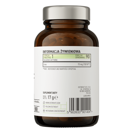 OstroVit Pharma Cynk organiczny to suplement diety, który stanowi źródło cynku w wysoce biodostępnej postaci pikolinianu cynku. To preparat z elitarnej linii OstroVit Pharma dostępny w formie łatwej do połknięcia tabletki. To produkt stworzony z myślą o osobach, którym zależy na uzupełnieniu codziennego jadłospisu w cenny mikroskładnik lub wyróżniają się zwiększonym zapotrzebowaniem na mikroelement.