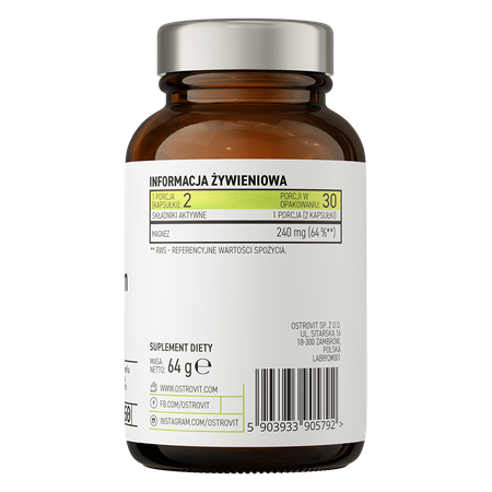 OstroVit Pharma Cytrynian Magnezu to wysokiej jakości suplement diety, który stanowi źródło magnezu, w wysoce biodostępnej postaci cytrynianu magnezu. To preparat z elitarnej linii OstroVit Pharma, dostępny w formie łatwych do połknięcia kapsułek, stworzony z myślą o świadomych konsumentach, którym zależy na uzupełnieniu codziennej diety w cenny mikroskładnik.