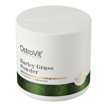 OstroVit Trawa Młodego Jęczmienia VEGE to wysokiej jakości suplement diety, który zawiera sproszkowaną trawę młodego jęczmienia. To wegański preparat, dostępny w wygodnej w użyciu formie proszku, stworzony z myślą o osobach, którym zależy na uzupełnieniu codziennej diety w wartościowe składniki.