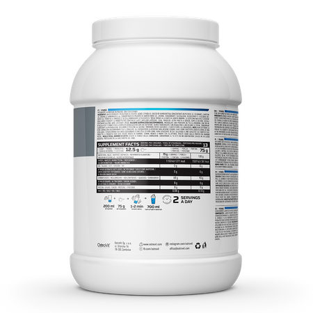 - Źródło węglowodanów - porcja suplementu diety dostarcza do organizmu 68 g węglowodanów w postaci skrobi Vitargo.