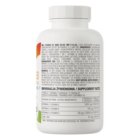 OstroVit Witamina D3 2000 IU + K2 MK-7 + C + Zn 60 kapsułek