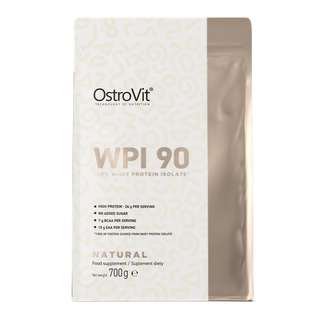 OstroVit Białko WPI 90 to wysokiej jakości suplement diety, który stanowi źródło izolatu białka serwatkowego. To preparat o prostym składzie i naturalnym smaku, dostępny w wygodnej w użyciu formie proszku. To produkt stworzony z myślą o sportowcach i osobach, które wyróżniają się zwiększonym zapotrzebowaniem na proteiny.