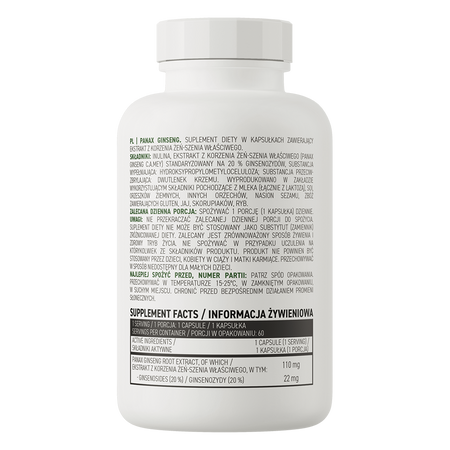 - Zawiera ekstrakt z żeń-szenia właściwego - jedna porcja suplementu diety dostarcza do organizmu 110 mg ekstraktu z żeń-szenia właściwego standaryzowanego na 20% ginsenozydów.