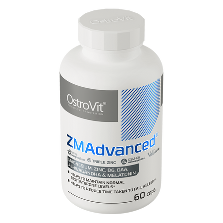 OstroVit ZMAdvanced to kompleksowy suplement diety, który zawiera sześć różnych substancji, m.in. ekstrakt z korzenia ashwagandhy standaryzowany na 5% witanolidów oraz melatoninę. To preparat dostępny w postaci łatwych do połknięcia kapsułek, stworzony z myślą o sportowcach i osobach, którym zależy na prawidłowej regeneracji organizmu.