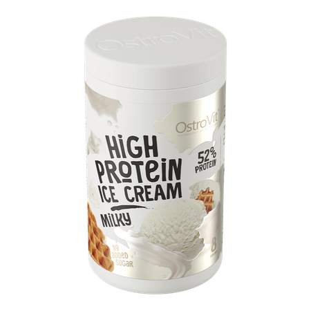 OstroVit Высокобелковое мороженое это десерт, который является ценным источником белка. Продукт доступен в порошковой форме с тремя восхитительными вкусами, которые можно легко использовать для приготовления вкусного мороженого. Этот десерт без добавления сахара идеально подходит в качестве богатого белком освежающего напитка для потребителей с повышенной потребностью в белке, а также для спортсменов и физически активных людей.
