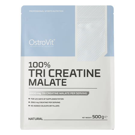 В препарате OstroVit используется креатин малат, который является комбинацией молекулы креатина с яблочной кислотой в соотношении 1:3. Это одна из наиболее растворимых форм соединения, которая отличается высокой стабильностью и устойчивостью к желудочным ферментам, а также отличным усвоением в человеческом организме. Креатин малат значительно меньше способствует задержке воды в организме, чем моногидрат, благодаря чему он очень популярен среди спортсменов различных дисциплин.
