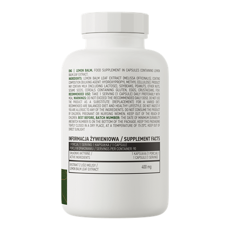OstroVit Лист мелиссы VEGE - высококачественная биологически активная добавка, которая содержит экстракт листьев мелиссы DER 4:1. Это веганский препарат, выпускаемый в виде легко глотаемых капсул. Это продукт, предназначенный для тех, кто хочет дополнить свой ежедневный рацион натуральными и ценными ингредиентами.