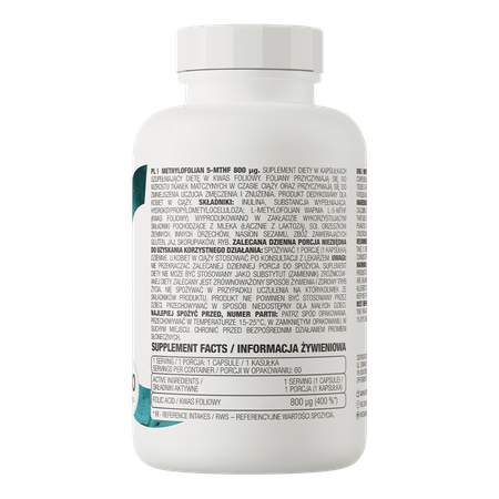 OstroVit Метилфолат 5-MTHF высококачественная биологически активная добавка, которая является источником витамина В9, известного как фолиевая кислота. Препарат выпускается в виде легко глотаемых капсул и предназначен для желающих дополнить свой ежедневный рацион ценным соединением.