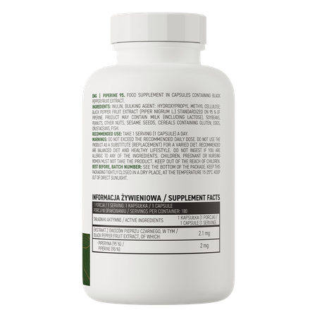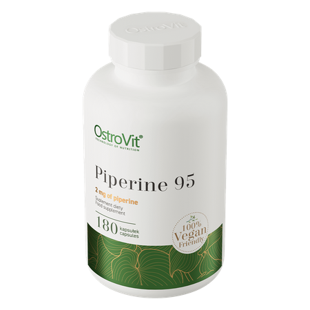 OstroVit Пиперин 95 VEGE высококачественная биологически активная добавка, которая содержит экстракт плодов черного перца, стандартизированный до 95% пиперина. Это веганский препарат в форме легко глотаемых капсул, предназначенный для сознательных потребителей, которые хотят получить ценное дополнение к своему рациону.
