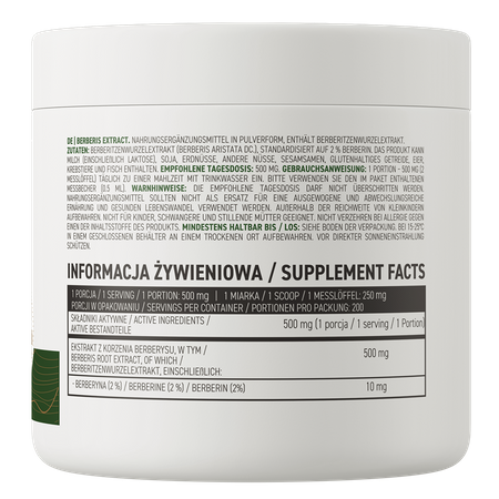 - Одна порция биологически активной добавки обеспечивает организм 500 мг экстракта корня барбериса, стандартизированного до 2% берберина.
