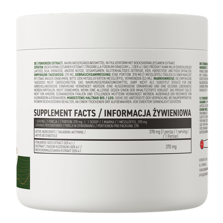 • Одна порция биологически активной добавки обеспечивает организм 370 мг экстракта семян пажитника DER 4:1.