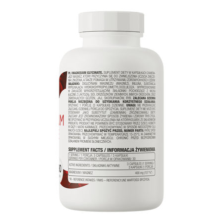 Магний - химический элемент с символом Mg. Это минерал, который относится к макроэлементам, потому что встречается в организме человека в значительных количествах. В человеческом организме магний в основном хранится в костях и мышцах, и только 1% этого элемента содержится в крови. Соединение широко распространено в пище и встречается как в продуктах животного, так и растительного происхождения. Диетическими источниками магния являются цельнозерновые крупы, сухие бобовые, а также орехи и зеленые листовые овощи. В препарате OstroVit используется магния диглицинат - хелат магния, соединение, являющееся соединением магния с двумя молекулами белковой аминокислоты глицина. Диглицинат магния - вещество, отличающееся высокой биодоступностью и усвояемостью, а также не способствующее возникновению желудочно-кишечных жалоб, что положительно сказывается на качестве продукта и эффективности приема добавки.