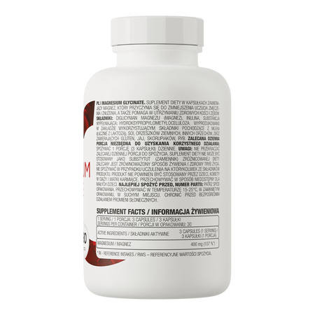 Магний - химический элемент с символом Mg. Это минерал, который относится к макроэлементам, потому что встречается в организме человека в значительных количествах. В человеческом организме магний в основном хранится в костях и мышцах, и только 1% этого элемента содержится в крови. Соединение широко распространено в пище и встречается как в продуктах животного, так и растительного происхождения. Диетическими источниками магния являются цельнозерновые крупы, сухие бобовые, а также орехи и зеленые листовые овощи. В препарате OstroVit используется магния диглицинат - хелат магния, соединение, являющееся соединением магния с двумя молекулами белковой аминокислоты глицина. Диглицинат магния - вещество, отличающееся высокой биодоступностью и усвояемостью, а также не способствующее возникновению желудочно-кишечных жалоб, что положительно сказывается на качестве продукта и эффективности приема добавки.