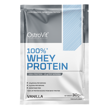 OstroVit 100% Whey Protein это концентрат сывороточного белка, в котором содержится до 70% высококачественного белка. Диетическая добавка является также ценным источником аминокислот с разветвленной цепью (BCAAs) и незаменимых аминокислот (EAAs). В составе продукта нет добавленного сахара или аспартама, а в составе пищевой добавки можно найти низкокалорийный подсластитель - сукралозу. OstroVit 100% Whey Protein - это высокобелковая питательная добавка, которая идеально подходит для поддержки спортсменов, независимо от их целей тренировок или предыдущего опыта.