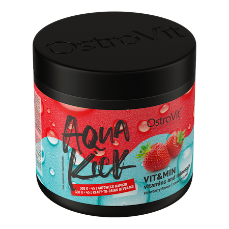 OstroVit Aqua Kick VIT&MIN комплексная биологически активная добавка, которая является источником ценных витаминов и минералов. Это продукт с приятным клубничным вкусом, выпускаемый в удобной порошковой форме. Это продукт, созданный для людей, желающих дополнить свой ежедневный рацион ценными микроэлементами.