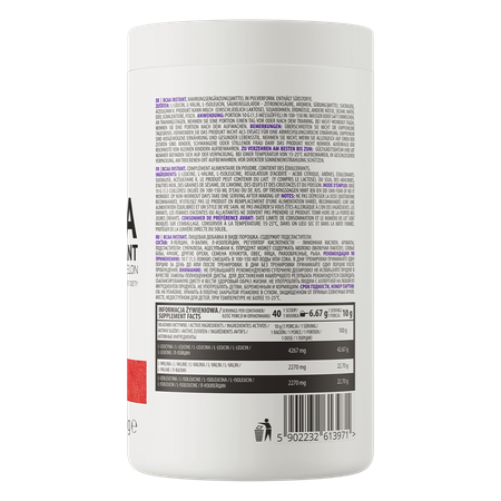 - Источник аминокислот с разветвленной цепью BCAA в соотношении 2:1:1 - одна порция диетической добавки обеспечивает организм 4267 мг L-лейцина, а также 2270 мг L-изолейцина и 2270 мг L-валина.