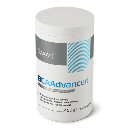 OstroVit BCAAdvanced высококачественная пищевая добавка, которая является источником аминокислот BCAA, а также L-глютамина, L-цитруллина, витамина B6 и ценных электролитов - калия, магния, натрия и хлорида. Препарат не содержит сахара и выпускается в порошковой форме с четырьмя различными вкусами. Это продукт, идеально дополняющий рацион спортсменов и физически активных людей.