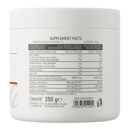 С возрастом уровень коллагена в организме снижается в результате естественных процессов старения, и поэтому рекомендуется снабжать организм коллагеном и извне - коллаген можно найти, например, в костях или сухожилиях животных. Интересным, но необычным источником вещества также является OstroVit Collagen Jelly. Это биологически активная добавка в виде фруктового десерта, которая обеспечивает организм гидролизованными пептидами рыбьего коллагена. По своей структуре соединение напоминает человеческий коллаген, благодаря чему вещество очень хорошо усваивается в организме человека. К тому же морской коллаген I типа выделяется более низким молекулярным весом, что положительно влияет на его усвоение. OstroVit Collagen Jelly это продукт, который создан для потребителей, жаждущих инноваций, но не могущих отказать себе в сладком, фруктовом удовольствии.