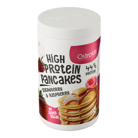 OstroVit High Protein Pancakes смесь для самостоятельного приготовления высокопротеиновых блинов и вафель. Это препарат с фруктовым, клубнично-малиновым вкусом, отличающийся высоким содержанием белка. Продукт не содержит добавленного сахара и идеально подходит в качестве ценной диетической добавки для спортсменов и людей с повышенной потребностью в белке.