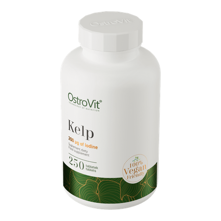 OstroVit Kelp VEGE высококачественная биологически активная добавка, которая содержит экстракт японской ламинарии, стандартизованный до 1% йода. Это веганский препарат, выпускаемый в виде легко проглатываемых таблеток. Продукт предназначен людям, желающим дополнить свой рацион ценными ингредиентами.