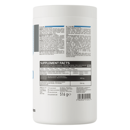 Креатин является химическим соединением, которое естественным образом присутствует в организме человека. Вещество поступает в организм также с ежедневным рационом питания - креатин можно найти в продуктах животного происхождения, таких как мясо, рыба и яйца, а также в виде пищевых добавок. Он ценится среди физически активных людей, так как повышает физическую работоспособность при последовательных коротких и очень интенсивных физических нагрузках, причем положительный эффект наступает при ежедневном потреблении 3 г креатина. В препарате OstroVit используется креатин малат, являющийся комбинацией молекулы креатина с яблочной кислотой в соотношении 1:3. Это одна из наиболее растворимых форм соединения, которая, благодаря большей устойчивости к воздействию желудочных ферментов, отличается высокой стабильностью и высокой биодоступностью в организме человека. Креатин малат не вызывает задержки воды в организме, поэтому он очень популярен среди опытных спортсменов.