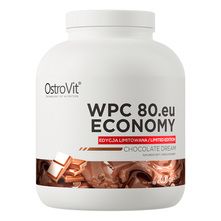 OstroVit WPC80.eu ECONOMY это высококачественная пищевая добавка, которая содержит концентрат сывороточного белка WPC, являясь тем самым ценным источником белка. Это препарат в порошковой форме с восхитительным шоколадным вкусом, который был разработан для спортсменов и людей с повышенной потребностью в белке.