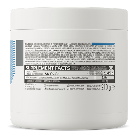 OstroVit Аргинин - это высококачественная пищевая добавка, которая является источником ценной аминокислоты L-аргинина. Это препарат с приятным фруктовым вкусом, доступный в удобной порошковой форме, не содержащей добавок сахара. Это продукт, созданный для спортсменов и людей, которые хотят дополнить свой рацион ценными соединениями.